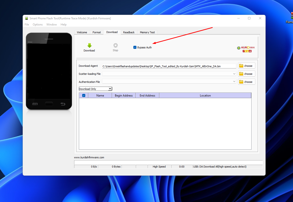 SP Flash Tool Edited Version With Auth Bypass By KurdishFirmware Free εχει επιλογη να τικαρουμε Bypass auth χωρις να χρειάζεται εξτρα software για τις mediatek συσκευες flash