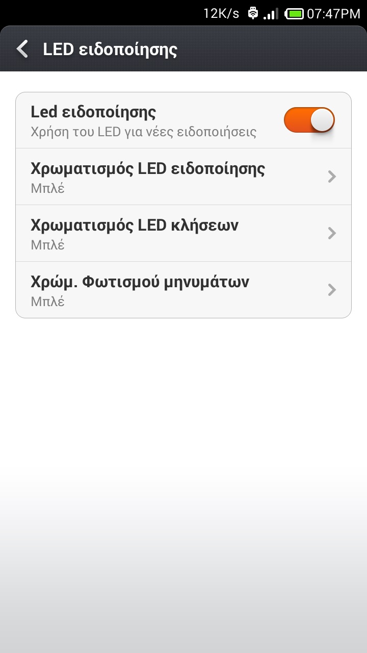 Ρυθμίσεις => Led ειδοποίησης = ON (ΟΚ)
