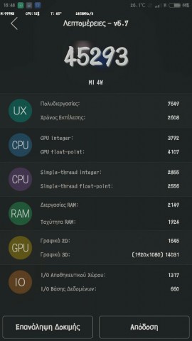 392 Απρ 27th 2015, 9:42am Mi-3 - Με την ελλην. ROM στις 24-4-2015 Μέτρηση ----> 43.444 σκορ. Περίπου στα ίδιο σκορ, από την προηγούμενη μέτρηση, αλλά πιο φορτωμένο με προγράμματα Είμαι απόλυτα ικανοποιημένος Images Screenshot_2015-04-27-09-34-30[1].png 75,64 kB, 450×800, viewed 110 times