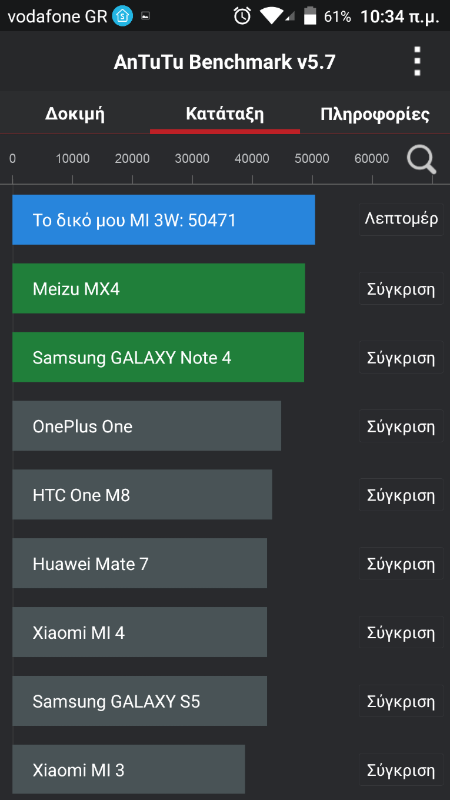 Antutu score από τα xiaomi