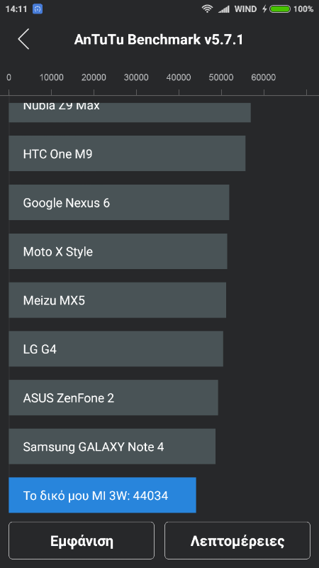 Antutu score από τα xiaomi