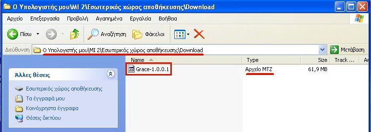 - Συνδέουμε το κινητό μας στον Η/Υ και αντιγράφουμε το θέμα μας π.χ. Grace-1.0.0.1.mtz στη διαδρομή «Ο Υπολογιστής μου / MIxx / Εσωτερικός χώρος αποθήκευσης / Download». Αν θέλουμε ανοίγουμε ξεχωριστό φάκελο π.χ. «Θέματα».