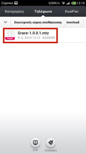 - Επιλέγουμε το αρχείο θέματος, πατώντας πάνω του, που θέλουμε να εγκαταστήσουμε στο κινητό μας.