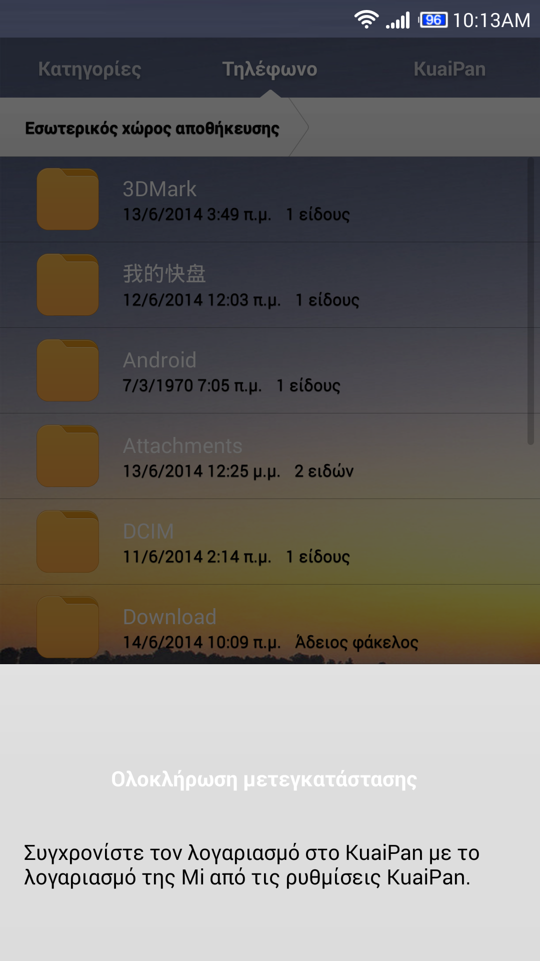 Χθες πήγα να βάλω τον κωδικό μου για να συνδεθώ στο KuaiPan το οποίο χρησιμοποιούσα στο ΜΙ2s και από τότε μου βγάζει αυτό το μήνυμα και μετά μου βγάζει αναμονή επειδή δεν ανταποκρίνεται.