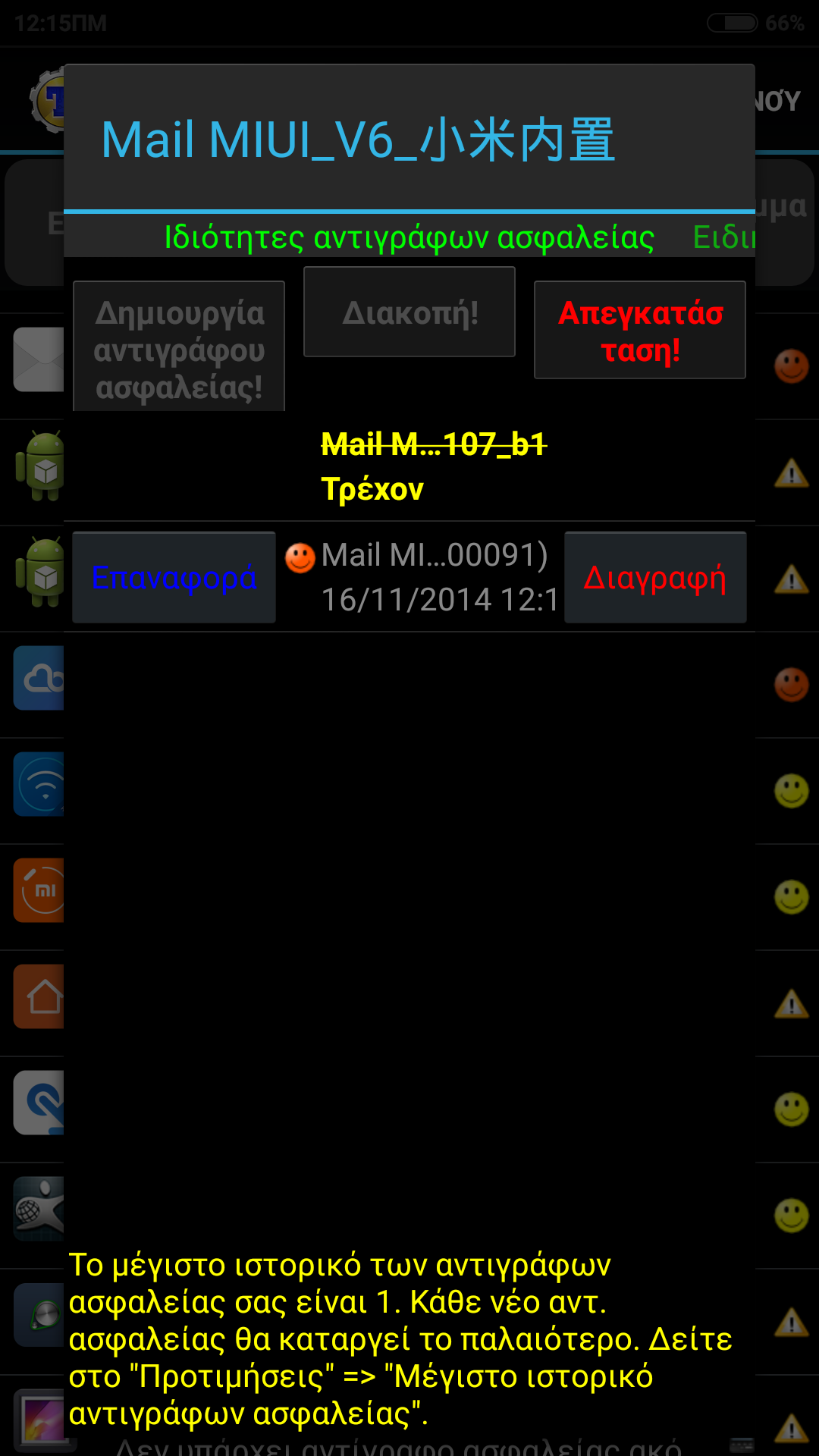 • Στη προετοιμασία πάνω πάνω λέει 1) Ενεργοποιούμε στο κινητό μας τα «δικαιώματα root» ως εξής: Ασφάλεια / Δικαιώματα / Δικαιώματα root. Εμένα δεν έχει διαθέσιμη αυτή την ενεργοποίηση.Επίσης στις ρυθμίσεις δεν υπάρχει επιλ. για προγραμματιστές..Έκανα αυτό που είπες με τις ρυθμίσεις/αντίγραφα & επαναφορά/τοπικά αντίγραφα/διμιουργία αντιγράφου/επιλέγεις τα Εφαρμογές και λογαριασμοί..Σε περίπτωση που κάνω full wipe data θα έχω πρόβλημα? (Δεν έχω ακολουθήσει κανένα από τα βήματα παραπάνω παρα μόνο αυτό που είπα.)