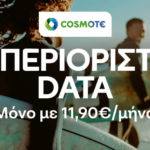 Cosmote : Προσφέρει απεριόριστα data με €11,90/μήνα για όλο το καλοκαίρι