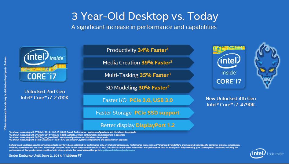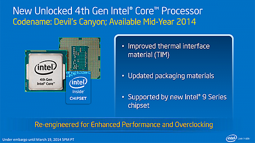 Οι ναυαρχίδες της Intel που ανακοινώθηκαν στην Computex 2014 με κωδικό όνομα "Devil's Canyon" ξεκίνησαν να πωλούνται στα καταστήματα. Βασισμένοι στην αρχιτεκτονική των 22 nm "Haswell Refresh" σε socket LGA1150, είναι σχεδιασμένοι για overclocking έχοντας υψηλότερα όρια voltage, ισχυρότερα ηλεκτρονικά μέρη και βελτιωμένο θερμικό υλικό.