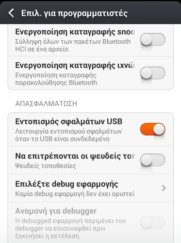 Επιλογές για προγραμματιστές -> Εντοπισμός σφαλμάτων USB [Πορτοκαλί]