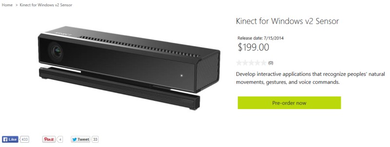 Η Microsoft άρχισε ήδη να δέχεται προ παραγγελίες για την PC έκδοση του Kinect v2 στο online της κατάστημα.