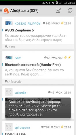 Δημήτρη μάλλον υπάρχει κάποιο πρόβλημα του forum μέσω του tapatalk. Πρώτον κρασαρει όταν πας να ανοίξεις κάποια θέματα και δεύτερον δεν κάνει παράθεση. Σε άλλα forum, μέσω tapatalk πάντα, δεν έχει κανένα από τα παραπάνω προβλήματα.
