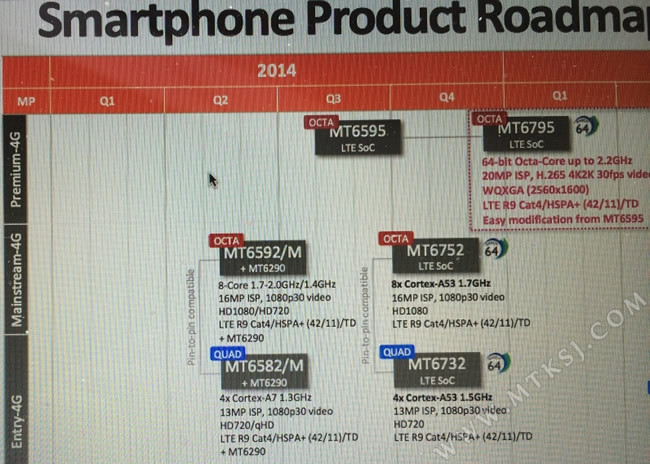 Έτσι μέσα στους επόμενους μήνες θα δούμε την επίσημη παρουσίαση του MT6595. Πρόκειται για ένα οκταπύρηνο SoC βασισμένο στην big.LITTLE αρχιτεκτονική της ARM με υποστήριξη για 4G LTE. Αυτόν θα πρέπει να τον δούμε μέσα στο τρίτο τρίμηνο του τρέχοντος έτους.