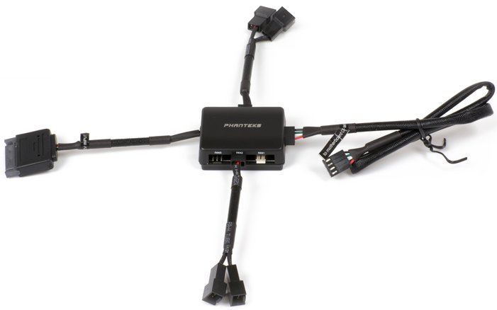 Το PWM Fan Hub μπορεί να τροφοδοτήσει έως και 11 ανεμιστήρες (3-pin) συνδεόμενο μόνο με μία 4-pin υποδοχή της μητρικής. Επιπλέον, βοηθά στο να διατηρείτε το εσωτερικό του κουτιού σας τακτοποιημένο μιας και όλα τα καλώδια ανεμιστήρων συγκεντρώνονται σε αυτό. Έρχεται με τρύπες για εύκολη ανάρτηση στο εσωτερικό του Enthoo ενώ διαθέτει και αυτοκόλλητα τύπου Velcro για χρήση σε οποιοδήποτε κουτί ανεξαρτήτως κατασκευαστή. Τέλος διαθέτει ένα Power Led το οποίο κατά την λειτουργία φωτίζει το λογότυπο της Phanteks.