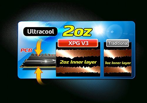Με ταχύτητες μέχρι 3100 MHz και μεταφορά δεδομένων που φτάνει τα 24.8 GB/s η σειρά XPG V3 σπρώχνει το gaming στο επόμενο επίπεδο. Υποστηρίζει το XMP (Extreme Memory Profile) έκδοσης 1.3 και χρησιμοποιεί μια ειδική τεχνολογία θερμικής αγωγιμότητας που μειώνει τη θερμοκρασία δραστικά. Επιτρέπει κάθε chip να έχει άμεση επαφή με τις ψύκτρες, με αποτέλεσμα οι μνήμες να λειτουργούν σε θερμοκρασία περιβάλλοντος για περισσότερη σταθερότητα.