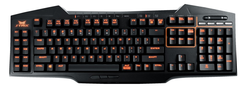 Το Strix Tactic Pro είναι ένα μηχανικό πληκτρολόγιο διαθέσιμο με τέσσερις Cherry MX διακόπτες (red, blue, brown, black) ανάλογα με την προτίμηση του χρήστη. Υποστηρίζει N-Key Rollover (NKRO) ενώ μπορεί να αλλάξει σε 6-Key (6KRO) μέσω ενός απλού διακόπτη. Έχει συνολικά 21 macro keys, μαζί με τα F1-F8 τα οποία μπορούν να επαναπρογραμματιστούν, και η εγγραφή των macros μπορεί να γίνει on-the-fly χωρίς να χρειαστεί να διακοπεί το gameplay.