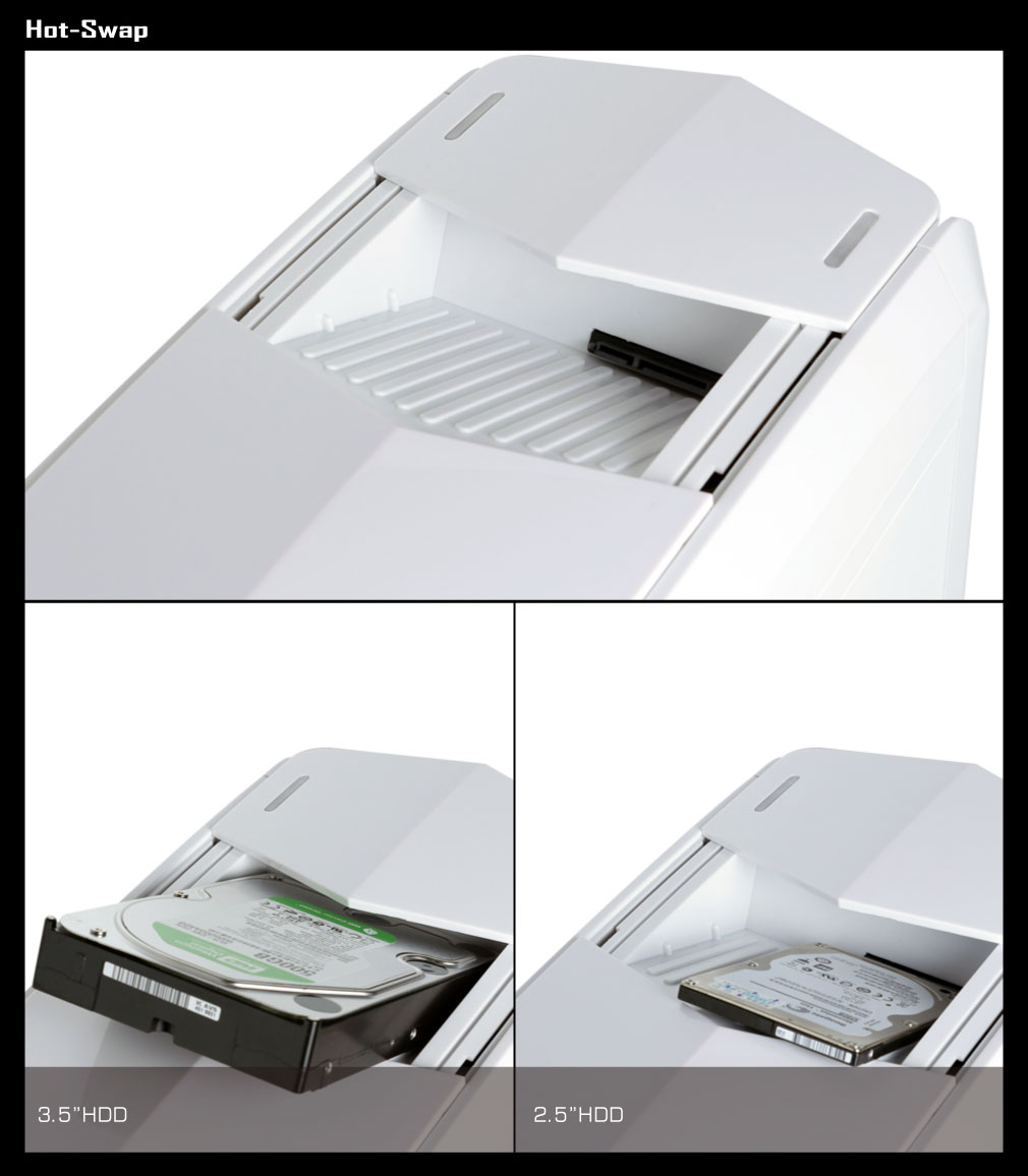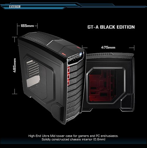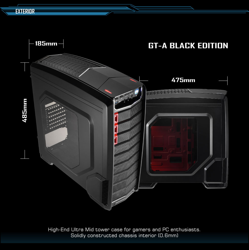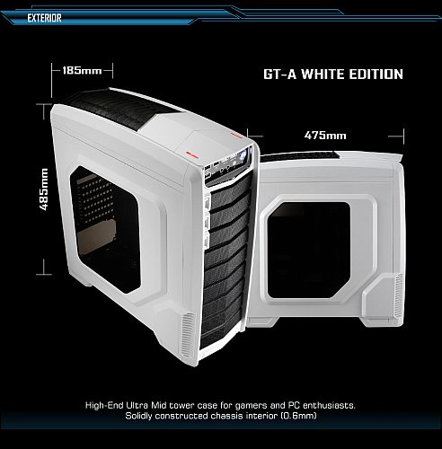 Το GT-A διαθέτει ένα φουτουριστικό σχεδιασμό και βγαίνει σε άσπρο και σε μαύρο χρώμα. Και οι δύο εκδόσεις διαθέτουν ένα μεγάλο πλαϊνό παράθυρο Πολύ χρήσιμο είναι το docking station που προσφέρει εύκολη πρόσβαση σε σκληρούς δίσκους και SSD χωρίς να ανοίξετε καθόλου το κουτί. Απλώς χρειάζεται να σύρετε το πάνω μέρος του κουτιού για να εγκαταστήσετε τον έξτρα δίσκο.