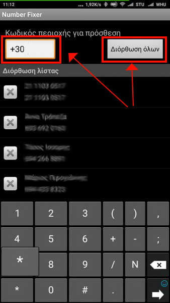 Πατάμε διόρθωση όλων και αυτόματα το πρόγραμμα βάζει το πρόθεμα μπροστά απο τους τηλεφωνικούς αριθμούς των επαφών μας