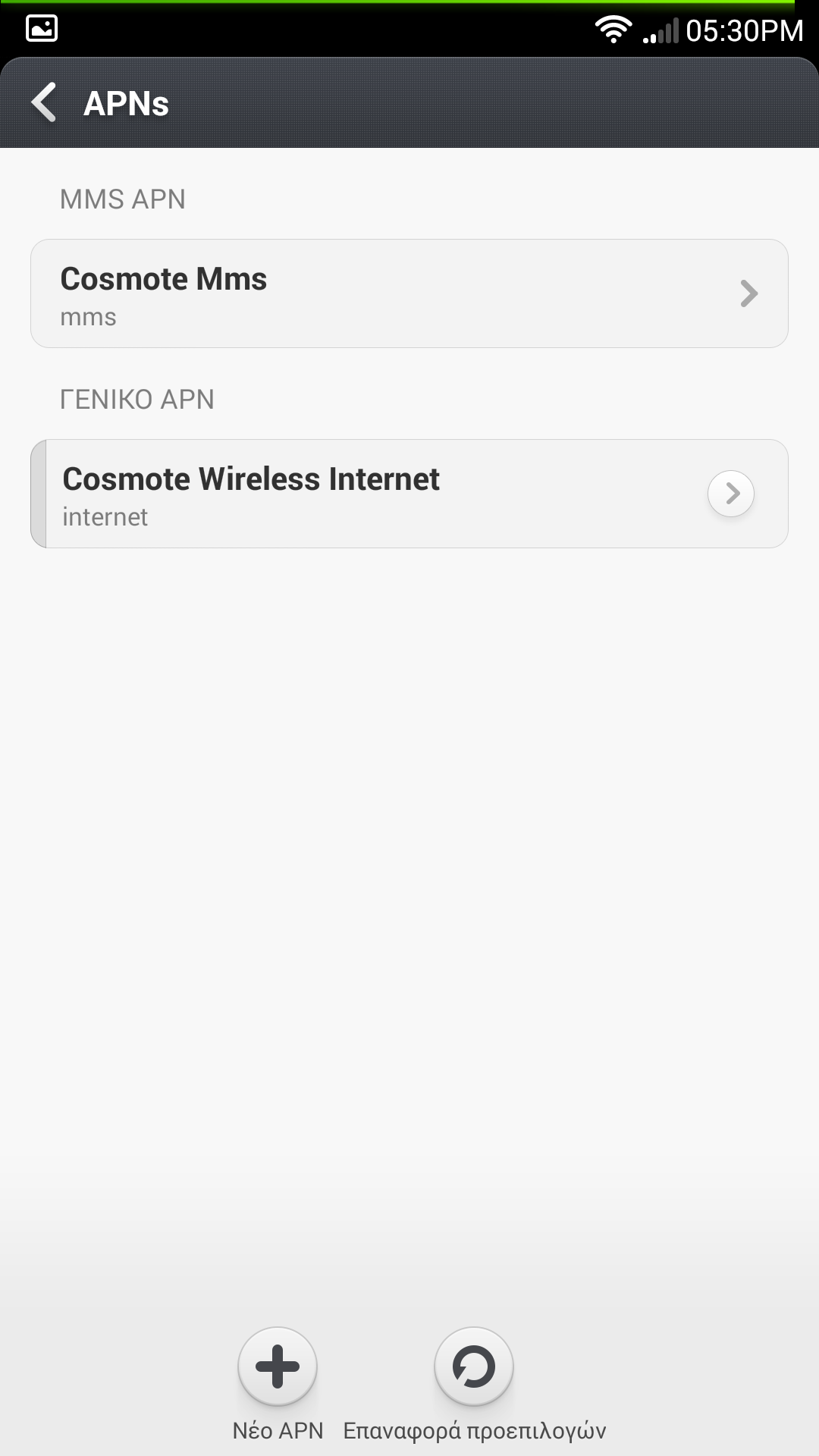 APN: internet.vodafone.gr (για καρτοκινητή είναι: webkarta.vodafone.gr)