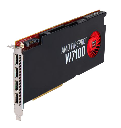 Η W7100 βασίζεται σε έναν πυρήνα που ακόμα δεν έχουμε δει, τον Tonga. Η AMD δεν αποκάλυψε πολλές πληροφορίες για την εν λόγω GPU, αλλά ξέρουμε ότι θα έχει 1792 GCN 1.1. stream processors, 256bit data bus, 8GB GDDR5 στα 5GHz και αρκετά χαρακτηριστικά του πυρήνα Hawaii. Διαθέτει τέσσερα displayports και μπορεί να οδηγήσει μέχρι και τέσσερα 4K monitors.