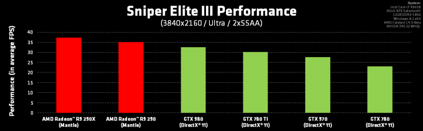 Τέλος, να αναφέρουμε ότι για την ενεργοποίηση του Mantle στο Sniper Elite III, θα πρέπει να έχουν εγκατασταθούν οι τελευταίοι οδηγοί της AMD, έκδοση 14.9, οι οποίοι έγιναν διαθέσιμοι μόλις πριν λίγες μέρες και μπορείτε να κατεβάσετε από το site της AMD.