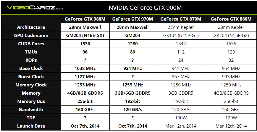 Μετά την αποκάλυψη των πρώτων μοντέλων της σειράς 900 για τους desktop υπολογιστές από την Nvidia στις 19 του Σεπτέμβρη, ήρθε η στιγμή της αποκάλυψης και της αντίστοιχης σειράς για τους φορητούς ηλεκτρονικούς υπολογιστές. Σήμερα λοιπόν η Nvidia αναμένεται να αποκαλύψει και επίσημα τις GTX 980M και GTX 970M, οι οποίες αποτελούν κομμάτι την νέας της σειράς Geforce 900M και είναι βασισμένες στην αρχιτεκτονική Maxwell.