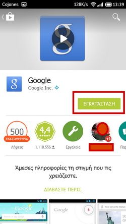 - Κατεβάζουμε και εγκαταστούμε την εφαρμογή Google (μαζί της εγκαθιστάτε αυτόματα και η εφαρμογή Φωνητική αναζήτηση) :