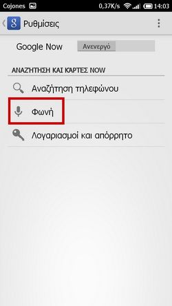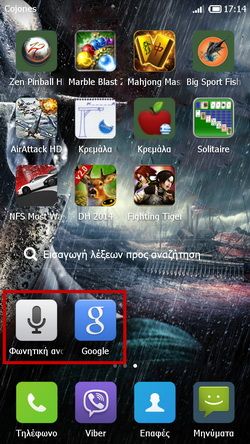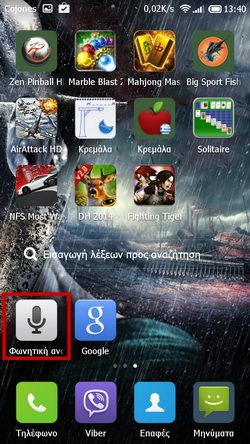 - Επιλέγουμε την εφαρμογή Φωνητική αναζήτηση και όταν ειδοποιηθούμε προσφωνούμε την ελληνική λέξη που το Google Search θα αναζητήσει: