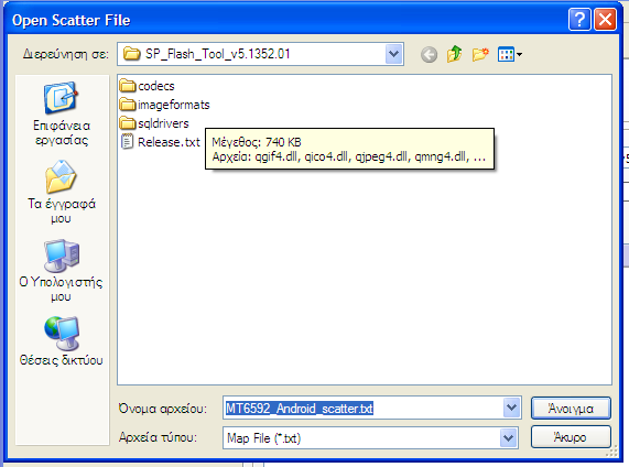 Εκεί αυτόματα θα μας δείξει μόνο ένα διαθέσιμο αρχείο το οποίο ονομάζεται MT6592_Android_scatter.txt