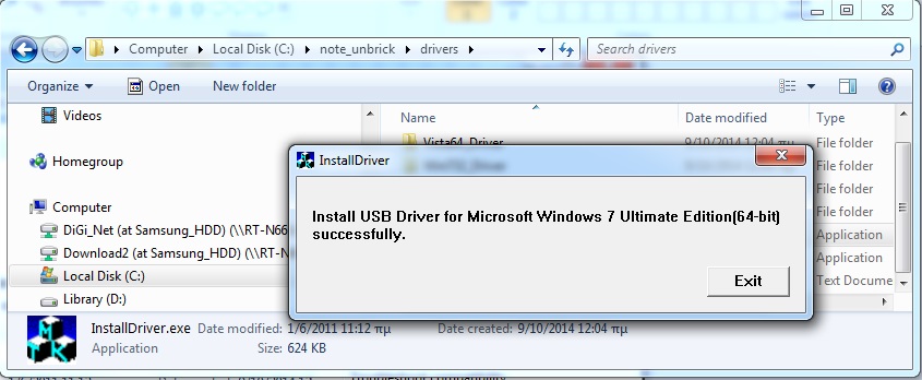 Τελειώνοντας η εγκατάσταση θα μας ειδοποιήσει πως εγκατέστησε τον Driver και θα μας ενημερώσει ταυτόχρονα για την Version των Windows (στην περίπτωση του παραδείγματος Windows 7 Ultimate 64Bit)