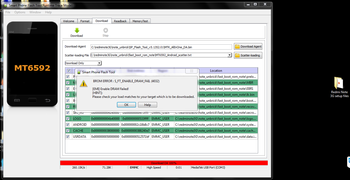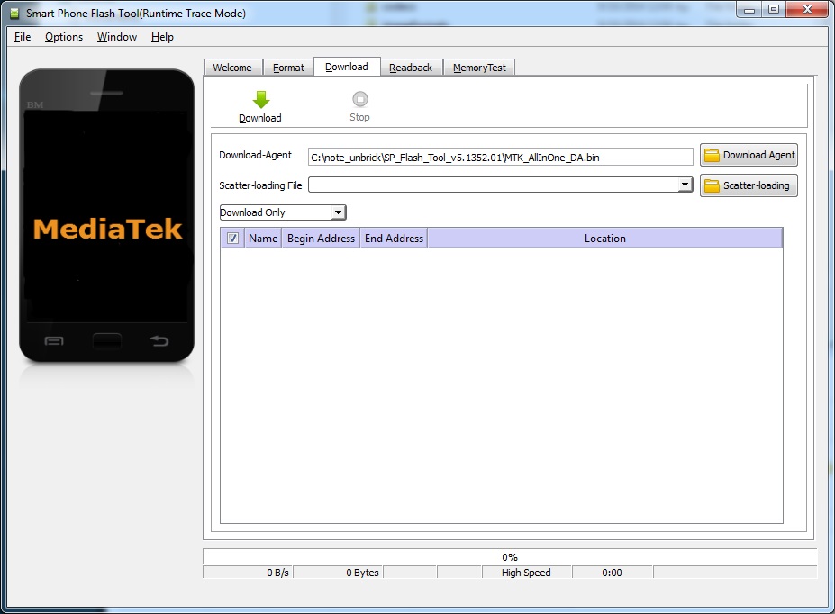 Πατάμε το κουμπί δεξιά που γράφει Scatter Loading και επιλέγουμε από τους φακέλους αυτόν με το όνομα note_unbrick\fast_boot_rom_note