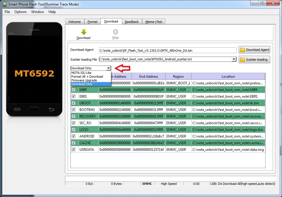 Πατάμε το κουμπί δεξιά που γράφει Scatter Loading και επιλέγουμε από τους φακέλους αυτόν με το όνομα note_unbrick\fast_boot_rom_note