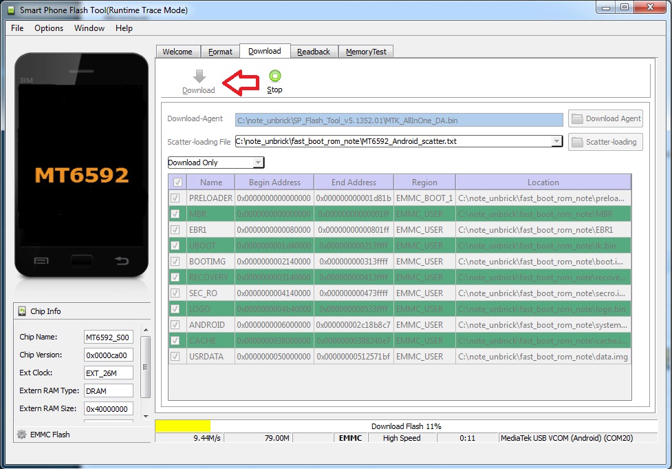 - Παταμε το πλήκτρο Download, και συνδέουμε το τηλέφωνό μας χωρίς μπαταρία σε μία θύρα USB 2 στο PC μας.