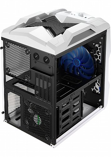 Στο επάνω μέρος υπάρχει I/O panel με δύο USB 3.0 θύρες, δύο 3.5mm audio jacks καθώς και fan controller για ανεμιστήρες συνολικής κατανάλωσης έως 15W.