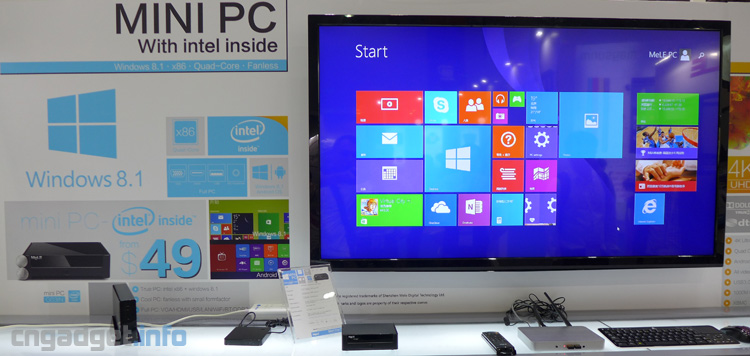 Μία από αυτές τις συσκευές είναι και το PCG03 TV Box/MiniPC που παρουσίασε στο Hong Kong Electronics Fair, η Κινεζική Mele Digital Technology Ltd. Το PCG03 θα χρησιμοποιεί τον quad core Intel Atom Z3735D ο οποίος έχει base συχνότητα λειτουργίας τα 1.3GHz και Turbo στα 1.83GHz, 1 ή 2 GB RAM DDR3, 16, 32 ή 64GB αποθηκευτικού χώρου τύπου eMMC, επεκτάσιμου μέσω microSD slot, HDMI 1.4, VGA και composite. Επιπλέον διαθέτει 10/100M ethernet θύρα, 802.11 b/g/n WiFi και δύο USB 2.0 υποδοχές.