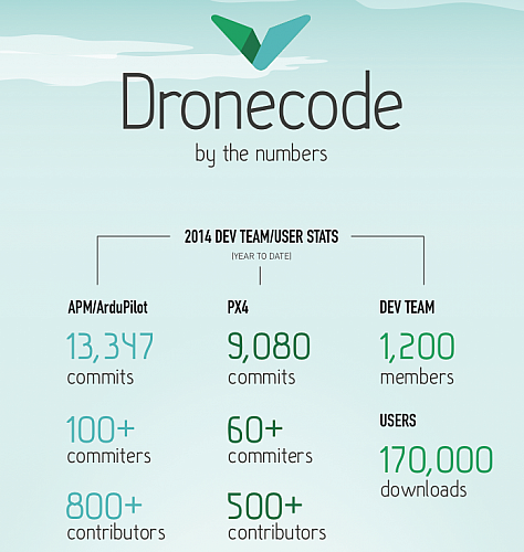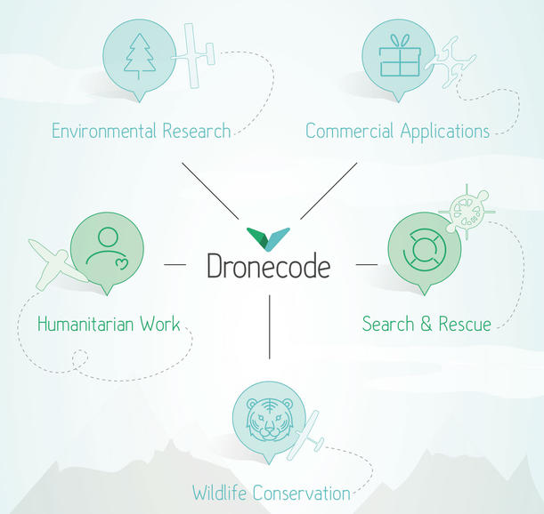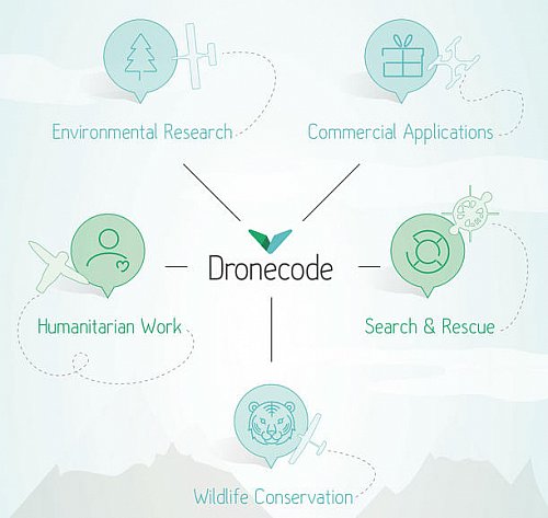 To Linux Foundation ανακοίνωσε το Dronecode, μία πρωτοβουλία που προωθεί τη συνεργασία για την ειρηνική χρήση των drones. To πρόγραμμα αυτό συγκεντρώνει το ήδη υπάρχον λογισμικό ανοιχτού κώδικα για Μη Επανδρωμένα Εναέρια Οχήματα (Unmanned Aerial Vehicles) κάτω από την ομπρέλα ενός μη κερδοσκοπικού οργανισμού. Ήδη υπάρχουν 1.200 προγραμματιστές που εργάζονται πάνω σε αυτό το πρόγραμμα και προσφέρουν πάνω από 150 κομμάτια κώδικα ημερησίως. Ανάμεσα στους κατασκευαστές που χρησιμοποιούν το λογισμικό Dronecode είναι οι εταιρίες Skycatch, DroneDeploy, HobbyKing, Horizon Ag, PrecisionHawk, Agribotics και Walkera.