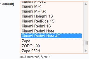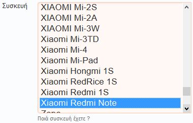 Στις επιλογές της συσκευής, στο προφίλ των χρηστών, μεταξύ άλλων, υπάρχει η συσκευή Redmi Note, αλλά δεν υπάρχει η συσκευή Redmi Note 4G LTE, που ουσιαστικά πρόκειται για εντελώς διαφορετική συσκευή απο το Redmi Note (με τον MTK επεξεργαστή).