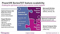Το κορυφαίο από τα δύο μοντέλα, το PowerVR 7XT θα στοχεύει σε οτιδήποτε από μέσου επιπέδου smartphones και πάνω, έως έξυπνες τηλεοράσεις και αυτοκίνητα. Στοχεύει καθαρά στην ταχύτητα προσφέροντας έως και 60% καλύτερες επιδόσεις στην ίδια συχνότητα σε σχέση με την 6XT. Η υπολογιστική του ισχύς φτάνει το 1TFLOPS σε FP16 mode, ενώ προαιρετικά υποστηρίζει DirectX 11 για συστήματα που θα τρέχουν Windows, ή High Performance Computing μέσω Open CL 1.2 Full Profile και FP64.
