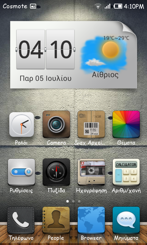 Επισης μπηκε μια πολυ ωραια γραμματοσειρα comic sans MS και μια γραμμη ειδοποιησεων με κουμπια πιεσης on -off ,ταπετσαριες κλειδωματος και μενου, ρολοι καιρου του Qiaojiao paper και εικονιδια mixed με live icons , πχ το εικονιδιο ρολογιου δειχνει την πραγματικη ωρα ,το εικονιδιο weather bz δειχνει καιρο και θερμοκρασια κτλ.