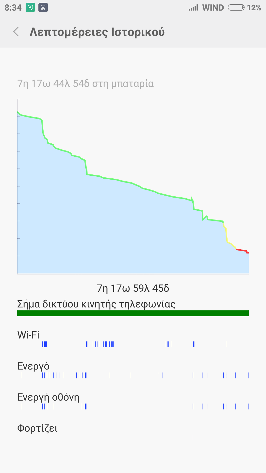 Βέβαια το screen-shot του χρόνου μας δείχνει για (7) ημέρες διάρκεια, αλλά νομίζω, ότι αυτό έγινε διότι την Κυριακή που έκανε την αναβάθμιση για την νέα Miui, το είχα παράλληλα συνδεδεμένο για (2) λεπτά στο ηλεκτρικό. ρεύμα.