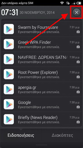 Εφόσον όλα πάνε καλά, πάμε για καφεδάκι και το αφήνουμε το κινητό μας να δουλεύει και να κάνει τις εγκαταστάσεις του, (κατά προτίμηση συνδεδεμένο στο wi-fi, επειδή πρόκειται να κατεβάσει "πράμα"...). Όταν επιστρέψουμε, στις ενημερώσεις θα αντικρίσουμε μια τεράστια λίστα με εφαρμογές που θα μας λένε ότι "εγκαταστάθηκαν με επιτυχία". Πατάμε μια φορά το Χ που βρίσκεται πάνω δεξιά και "εξαφανίζονται" όλες μαζί... και εμείς έχουμε τώρα ΟΛΕΣ τις εφαρμογές εγκατεστημένες στη συσκευή μας.