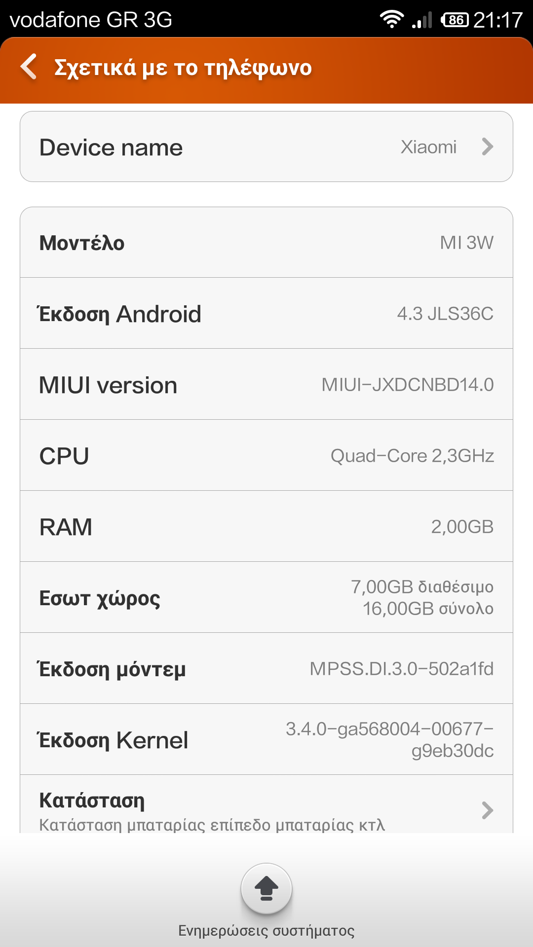 Είμαι ιδιοκτήτης ενός νέου Xiaomi MI3 από τις 27 Νοεμβρίου. Η συσκευή είναι πολύ όμορφη, αλλά έχω κάποια προβλήματα με τις εισερχόμενες κλήσεις. Όταν κάποιος με καλεί δε μπορώ να λάβω την κλήση και έρχεται σε μένα σαν αναπάντητη. Έχω δοκιμάσει τα πάντα με τις ρυθμίσεις της συσκευής, αλλά ακόμα τίποτα (δεν υπάρχει τίποτα στη λίστα αποκλεισμού). Μπορεί κάποιος να με βοηθήσεις με αυτό το πρόβλημα παρακαλώ. Επισυνάπτω φωτογραφία με πληροφορίες της συσκευής μου. Ευχαριστώ.