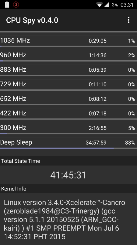 • Έχω δοκιμάσει τον συγκεκριμένο kernel. Επιτρέπει OC αν και δεν το έχω προσπαθήσει. Από μπαταρία πάει πολύ καλά και από RAM τα ίδια. Το μόνο πρόβλημα που είχα είναι ότι σχεδόν κάθε φορά που έτρεχα antutu η συσκευή είχε SOD και έπρεπε να πατήσεις παρατεταμένα το κουμπί εναρξης για να επανέλθει