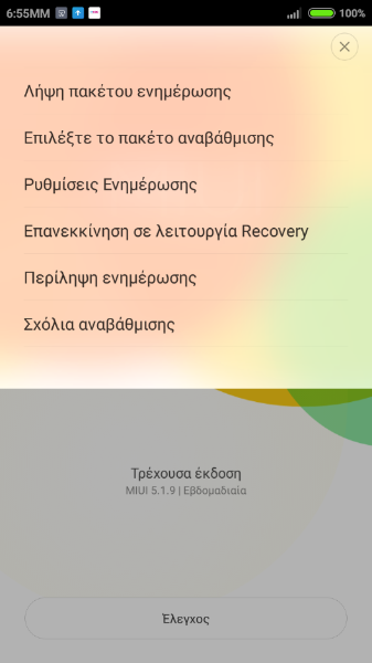 θα ελέγχουμε για αναβαθμίσεις μόνο από την εφαρμογή ota updater=>ΡΟΜ=>Διαθέσιμες ενημερώσεις