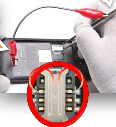• Βρείτε ένα μεταλλικό αντικείμενο ή καλώδιο ώστε να κάνετε το βραχυκύκλωμα που δείχνει η παρακάτω εικόνα, και ΠΡΟΣΟΧΗ μην βραχυκυκλώσετε λάθος σημεία.