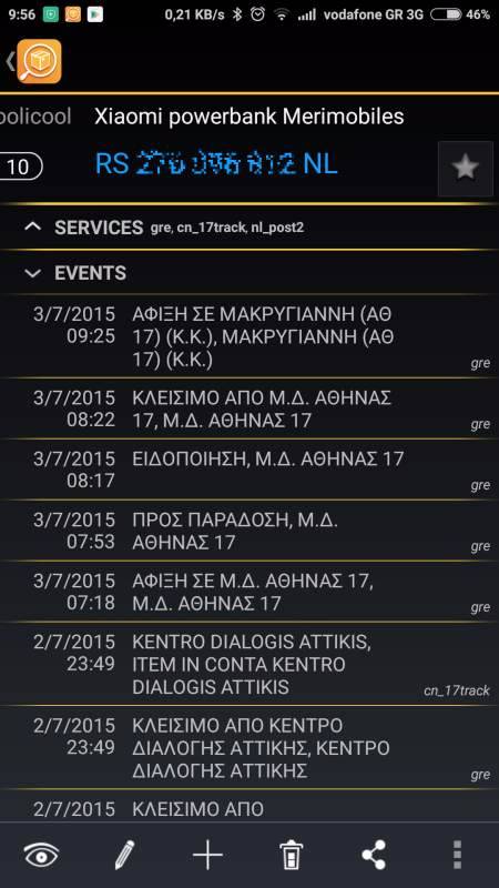 Στην δική μου περίπτωση, αυτό φαίνεται μόνο στα ΕΛΤΑ εδώ και μέρες (δείχνει μόνο την ημερομηνία αποστολής απο τη Κίνα) :