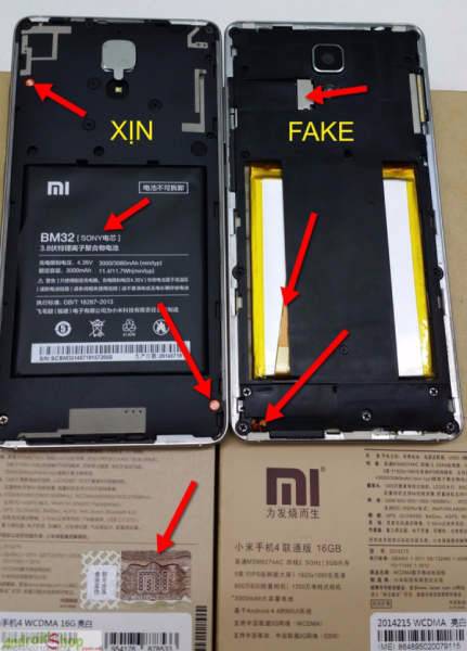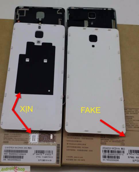 Τα παρακάτω είναι από μία βιετναμέζικη ομάδα συζήτησης, η οποία κάνει σύγκριση ένα πρωτότυπο Mi 4 με ένα πλαστό.
