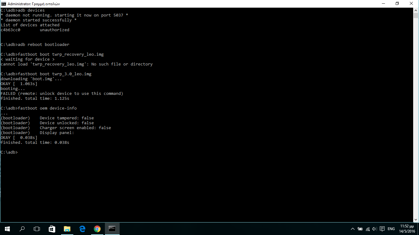 αυτα μου βγαζει κοιτα το screenshot ενω παει να περασει το img κολλαει στο booting λεει failed remote unlock device to use this commandΟ/H maddoctor έγραψε: