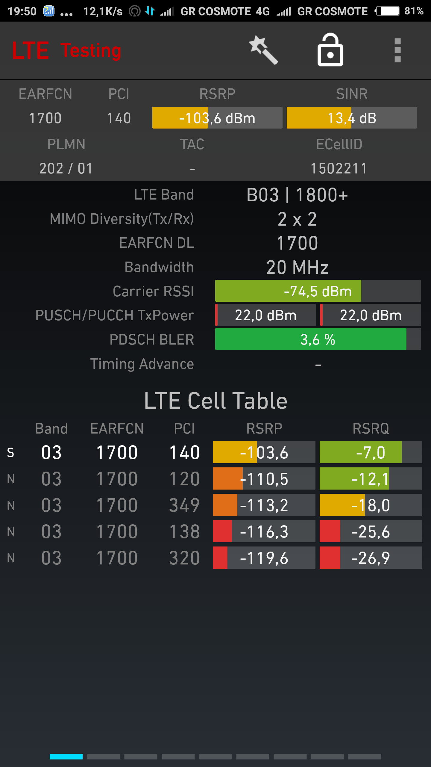 εδώ φιλε μου τι τσεκαρουμε?μονο το LTE band που μου δειχνει την συχνοτητα?υπαρχει τιποτα άλλο που είναι χρησιμο σε όλα αυτά τα δεδομενα κ πρεπει να το κοιταζω?