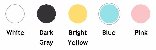 Α: Κυκλοφορεί σε 5 χρώματα τα οποία είναι: Σκούρο γκρι, Λευκό, Ροζ, Κίτρινο και Γαλανό