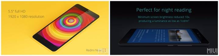 Α: Φοράει μια IPS οθόνη στις 5,5 ίντσες και ανάλυση 1920 Χ 1080 στα 120ΗΖ. Το Redmi Note 2/Prime για να προστατεύσει τα μάτια όσων από εμάς το χρησιμοποιούμε για σερφάρισμα ή gaming μέσα στο σκοτάδι μπορεί να μειώσει την φωτεινότητά του κατά 10 φορές και μπορεί να παράγει μια φωτεινότητα τόσο χαμηλή όσο 1cd/m2. Έτσι δεν κουράζονται τα μάτια κατά την νυχτερινή χρήση.
