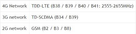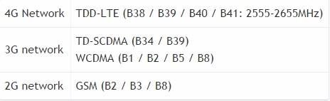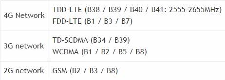 Η βασική έκδοση (FDD 2015051), υποστηρίζει διπλές μπάντες και συχνότητες που ισχύουν και στην Ελλάδα πλην της μπάντα Β20 στα 800Μhz για 4G που υπάρχει στην Ελλάδα αλλά δεν την υποστηρίζει το τηλέφωνο: